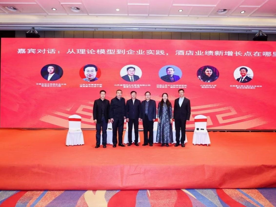 论坛上,龙藏资本创始人赵祥龙、国际品牌分析师赵欧仁、xhotel数字化酒店创始人严毅、浪潮集团零碳行业高级专家王广齐、携程集团山东区域总监颜华等专家分别从经济周期视野下酒店企业的破局、酒店品牌如何与时代一起进化、让酒店进入"自动驾驶"新时代、零碳酒店解决方案、山东酒店市场回顾与2025年展望等方面做了精彩的主题演讲。MG冰球突破网站副院长张炳文教授在“酒店业绩新增长点在哪里”的嘉宾对话环节,结合2025年中央一号文件提出的“健全粮食和食物节约长效机制”、“加快构建农产品现代流通网络 支持各类主体协同共建供应链”等内容,创新性提出酒店面对新消费要用好“跨界融合”、“科技赋能”2个要素,充分融合农产新品种的推介与使用,讲好酒店餐饮产品的科学故事,创造消费新热点,引领大众主动消费。张教授的简短发言引起入会人员的强烈共鸣与关注。学院酒店管理系主任侯兴起教授主持了“2025酒店运营面临的挑战与对策”专题的嘉宾对话环节。