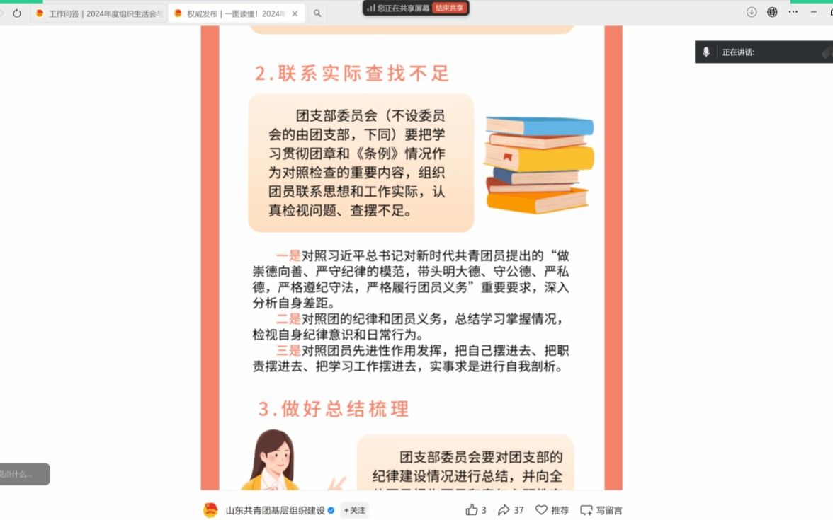 会议伊始,聂安琪同学围绕《工作提示》的总体要求、实施步骤和注意事项进行详细解读,重点强调了组织生活会的规范流程、团员教育评议的标准细则及评议结果运用等内容。她指出,组织生活会和团员教育评议是加强团员思想政治引领、提升基层团组织凝聚力的重要抓手,各团支部要严格按照文件要求,结合支部实际制定方案,确保程序规范、评议公正、成效显著。