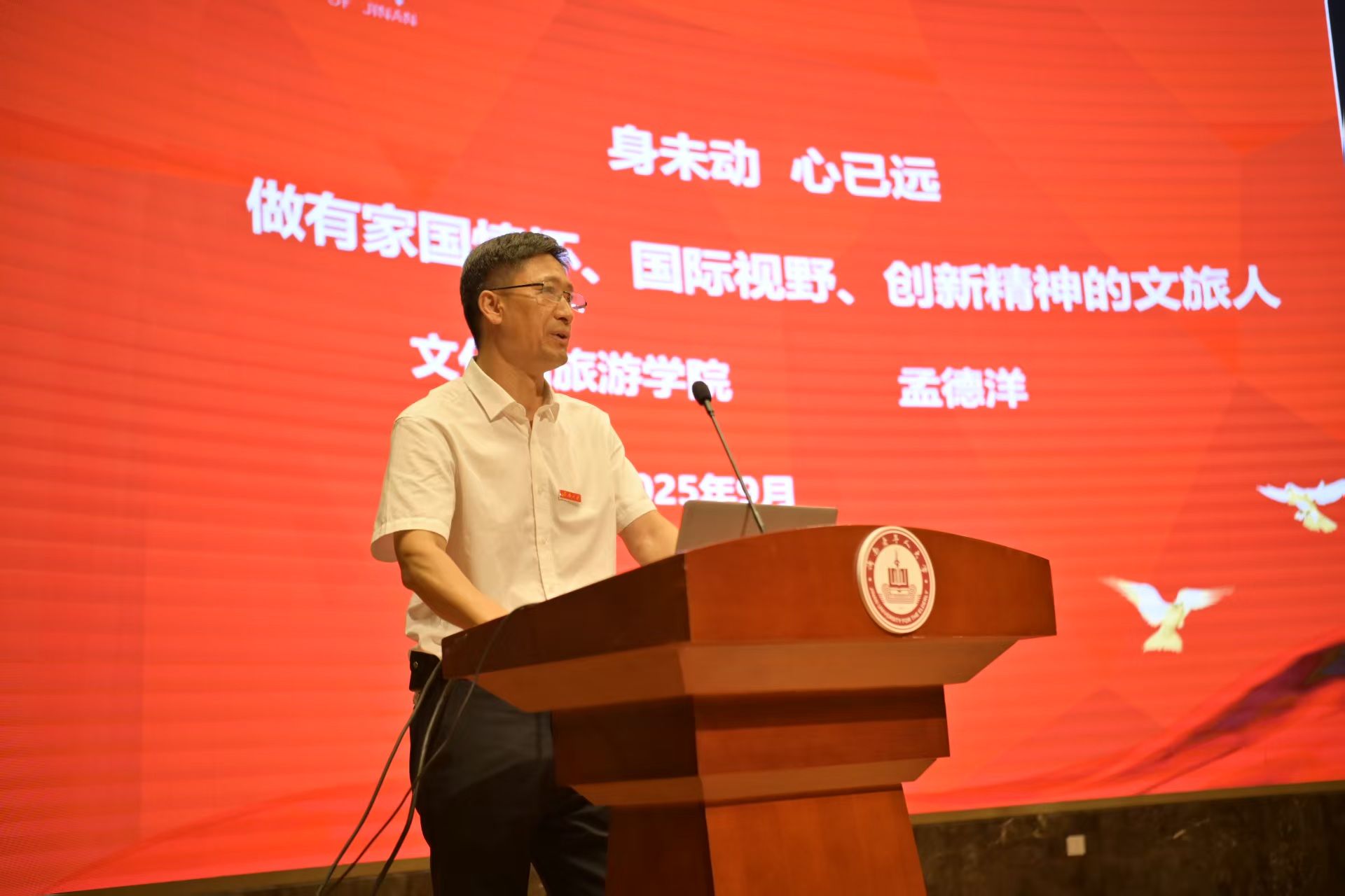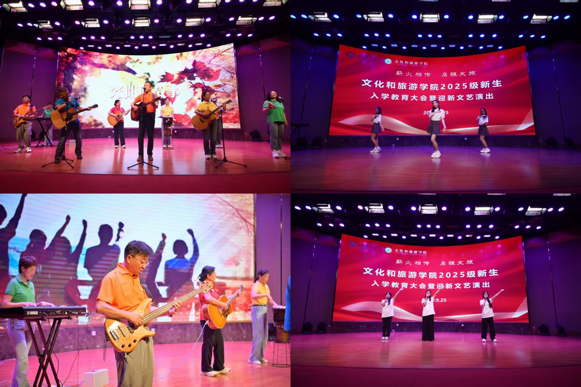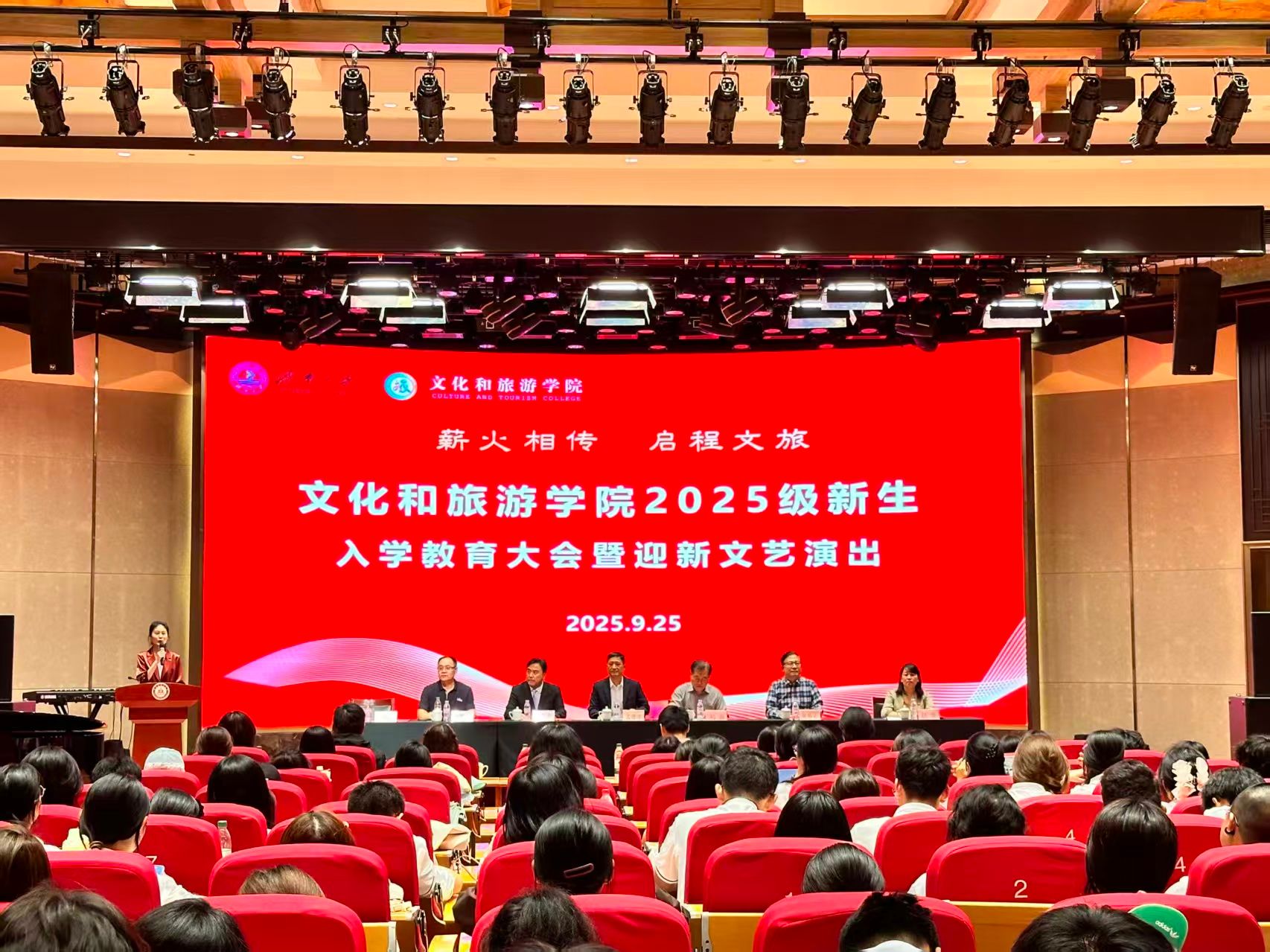 9月25日下午,MG冰球突破网站“薪火相传 启程文旅”2025级新生入学教育大会暨迎新文艺演出在济南老年人大学报告厅隆重举行。学院全体党政领导班子成员,各系教师代表、全体辅导员、新生班主任以及2025级全体本科生和研究生共同参加了这场青春盛典。