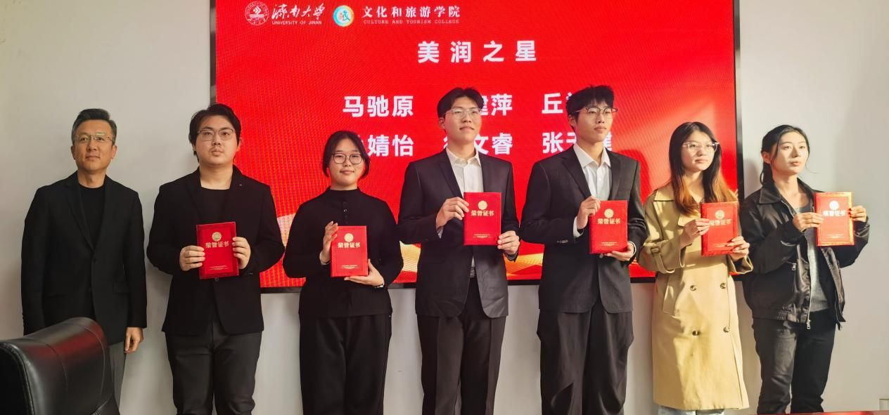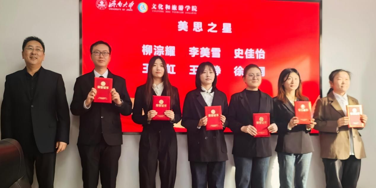在随后进行的表彰仪式上,信苏珊宣读了《MG冰球突破网站首届“四美之星”表彰决定》。学校党委常委、宣传部部长卢旺,学校学生工作处处长胡春毅,学校团委书记李书翔,学院副院长马修伦分别为“美思之星”“美润之星”“美创之星”“美善之星”获奖学生代表颁奖。获奖学生代表刘炳玺同学上台发言,分享了其在美育熏陶下成长的心得体会,表达了对学校、学院培养的感激之情以及继续砥砺前行的决心。