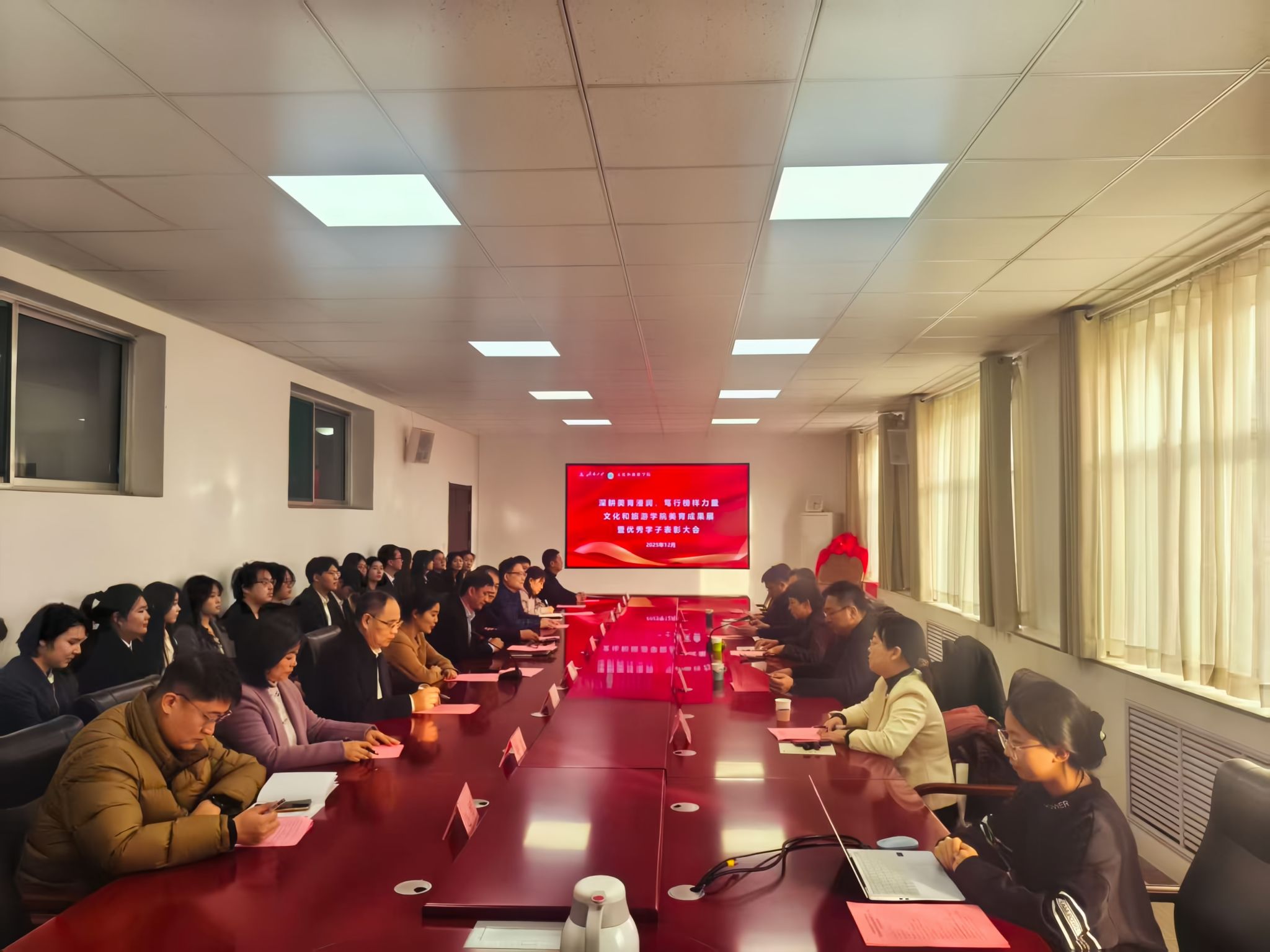 岁序更替,华章日新。12月31日下午,MG冰球突破网站美育成果展暨优秀学子表彰大会于学院会议室隆重举行。学校党委副书记、美育学部主任商华出席活动,学校党委宣传部、学生工作处(武装部)、党委教师工作部、团委等部门相关负责同志及学院全体党政领导班子、教师代表、获奖学生代表、各班级学生代表参加活动,活动由学院党委副书记、副院长信苏珊主持。