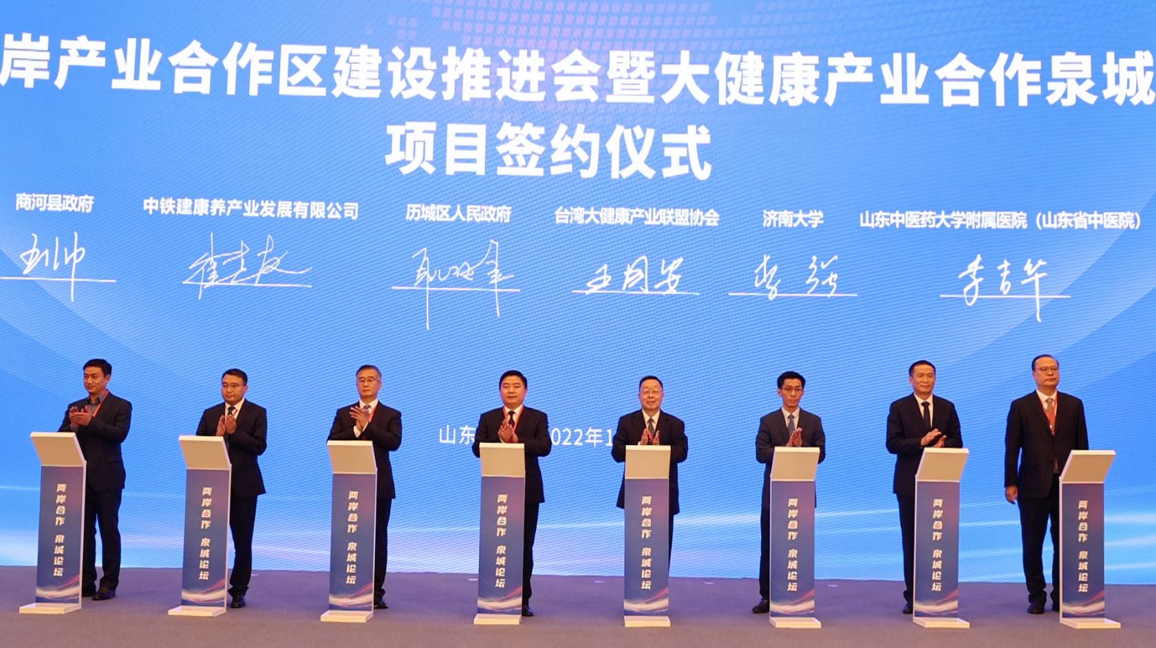 会上共有11个合作项目现场签约,由MG冰球突破官网和山东省康养服务学会、台湾大健康产业联盟协会共建的康融两岸大健康学术交流(山东 )中心同时签约,李强代表学校参加了签约仪式。该中心是在省台港澳办公室指导下、在济南市台港澳办支持下成立,旨在促进海峡两岸文化学术交流,提升山东康养管理服务水平,强化智力支撑和人才培训,以此推动全省健康事业与康养产业发展。