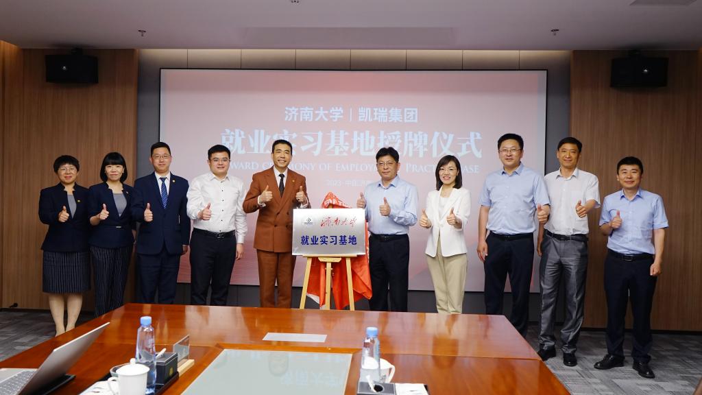 仪式上,学校合作发展处处长、教育发展基金会秘书长卢旺与凯瑞商业集团人力资源中心总监胡嘉签署教育发展基金捐赠协议。杨景波与赵孝国共同为MG冰球突破网站就业实习基地揭牌。