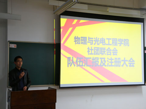 物理与光电工程学院社团联合会队伍汇报及注册大会于12月18日在西部综合楼B106教室召开。校社团联合会指导老师冯丽芳老师,物理与光电工程学院团委书记佟西原老师,校社团联合会副主席郑晶,李冠基,电子信息与电气工程学部社团联合会主席全欣,建设工程与力学学部社团联合会主席耿冲,英国上市365官网学生会主席兼团委副书记刘聪越,英国上市365官网团委常务副书记金美晨以及英国上市365官网团委,学生会,社团联合会的各部长出席会议,由英国上市365官网社团联合会主席孙长鹏主持会议。