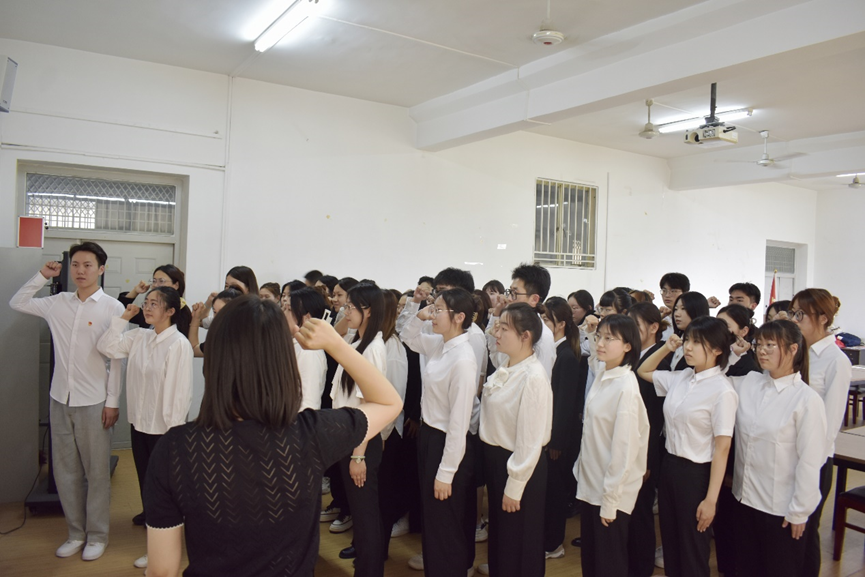 为进一步加强和推进党员队伍建设,切实提高党员发展质量,6月16日中午12点10分,MG冰球突破网站学生第一党支部于三教508开展预备党员接收大会。本次会议由学生第一党支部书记张莉主持,参加本次大会的有教师党员吕龙飞、赵军,和学生第一党支部预备党员及韩佳怡等30名发展对象。