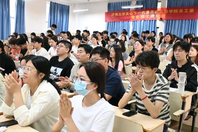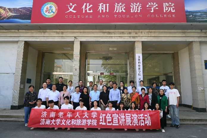为进一步弘扬爱国主义精神,传承红色基因,加强党史学习教育,深化校际交流合作。4月27日,MG冰球突破网站与济南老年人大学、MG冰球突破网站关心下一代工作委员会(以下简称关工委)联合开展了红色宣讲展演暨党史校史进课堂活动。济南老年人大学关工委副主任、志愿服务团团长张建军,MG冰球突破网站关工委副主任梁伟,MG冰球突破网站离退休工作处处长、关工委秘书长高卫红,MG冰球突破网站MG冰球突破网站党委书记孟德洋,学院党委副书记、副院长信苏珊出席活动,济南老年人大学宣讲团、文旅学院全体学生党员、新一期积极分子、青马工程学员、教师代表共200余人参加活动。