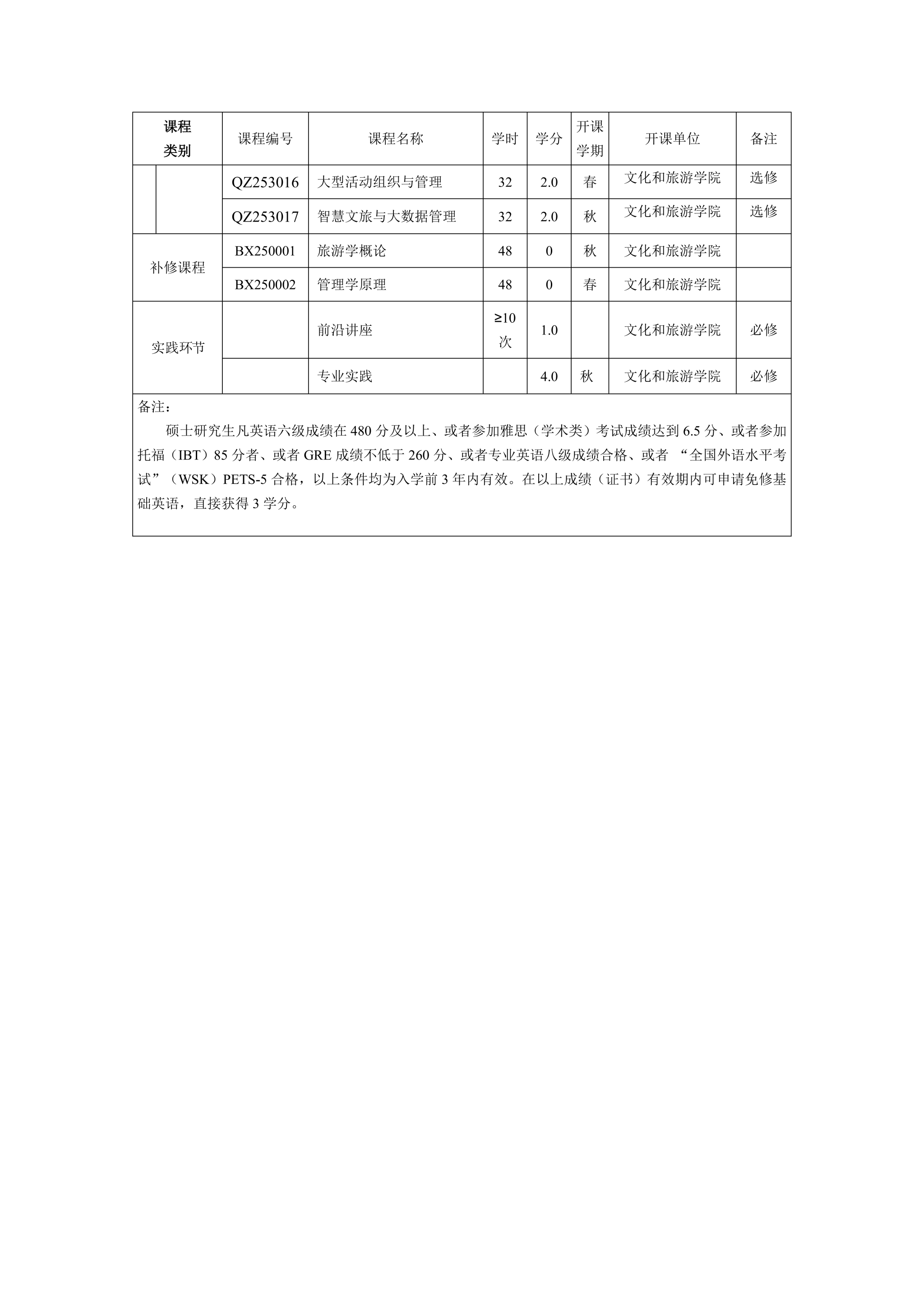 MG冰球突破网站“旅游管理”旅游管理硕士专业学位 研究生培养方案