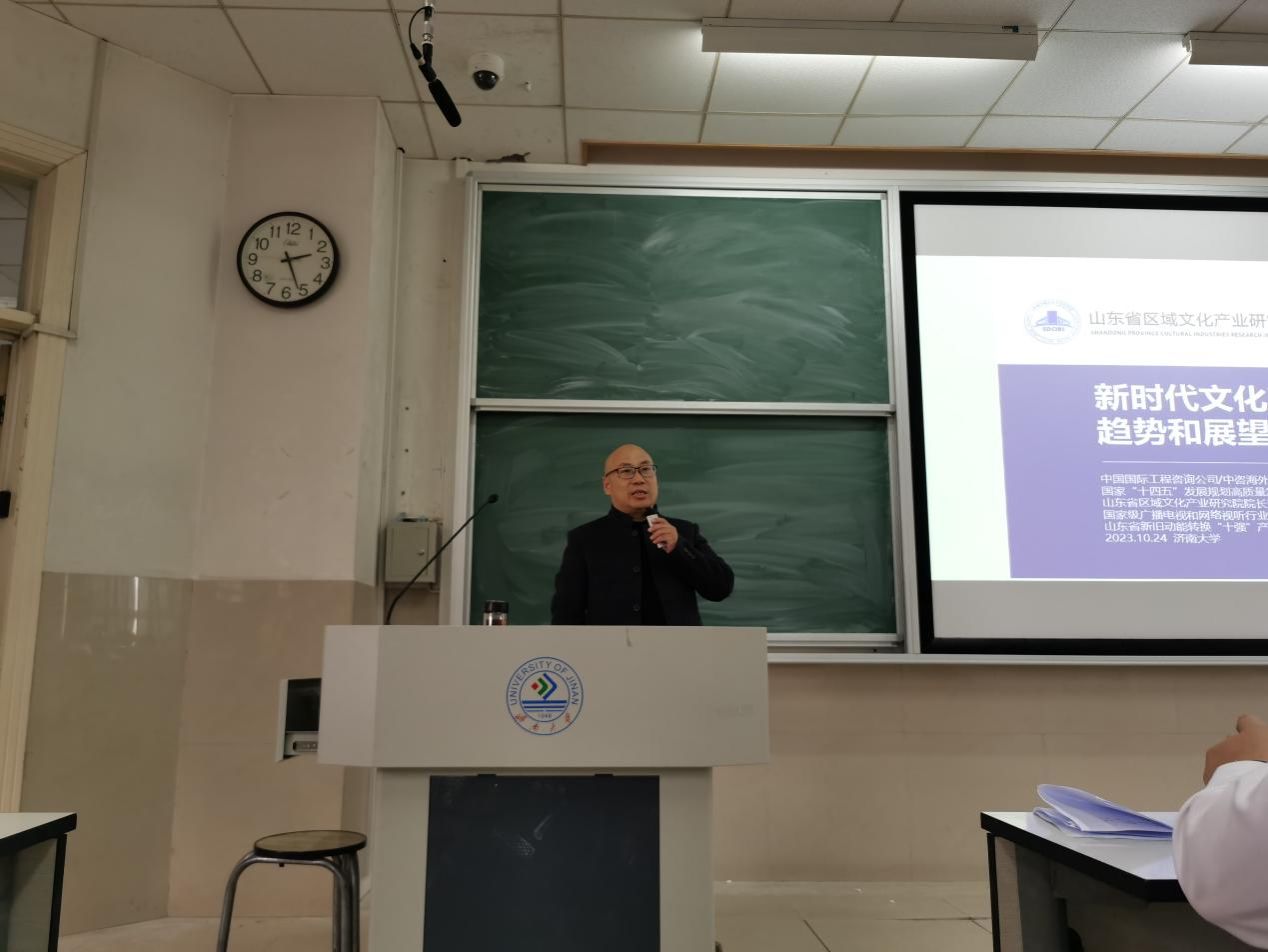 报告中,孙吉国研究员全面阐述了新时代中国特色社会主义思想的来源与发展,以及对特色社会主义思想的时代注解。围绕什么是文化产业、文化产业面临的发展问题、如何建设发展文化产业,以及如何利用新时代社会主义思想建设文化产业等几方面进行解读与阐释,并探索性提出了新时代文化产业高质量发展的路径选择。