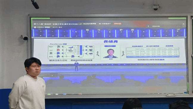 本次活动由创新创业部荆浩宇同学主持。荆浩宇同学向同学们介绍赛事的组织机构、参赛对象、竞赛日期和赛项设置,提醒同学们关注官方平台和社交媒体,及时获取最新信息。他也向同学们讲解了赛事规范,包括作品的格式与提交、评分标准、奖项设置等,鼓励同学们跨学科跨专业组队。最后,荆浩宇同学展示往届获奖作品,激发同学们的灵感,帮助同学们产生新的创意和想法,改进自己的作品。