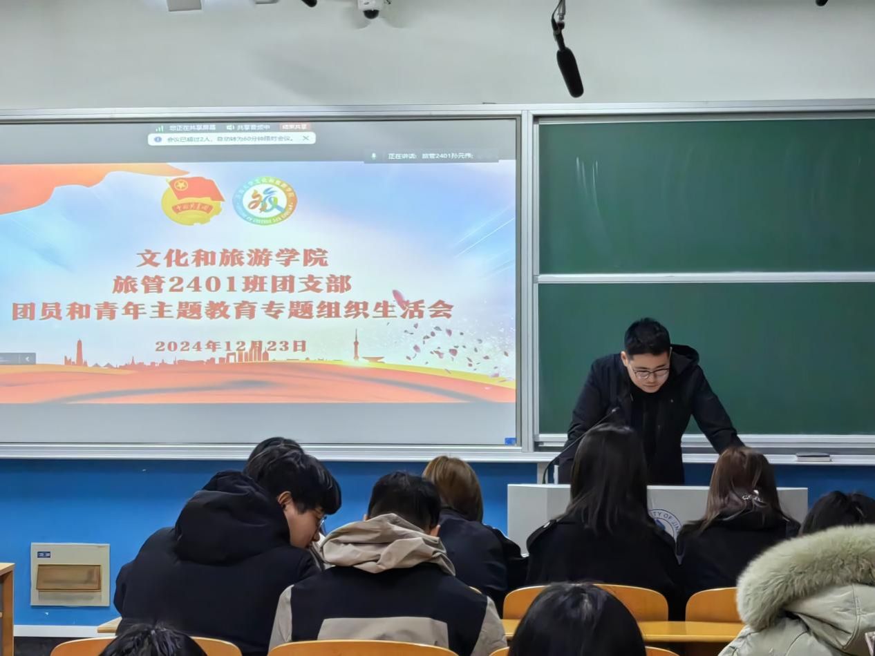 为保持先进性并加强组织建设,12月23日,MG冰球突破网站MG冰球突破网站开展2024年度示范性团员和青年主题教育专题组织生活会,会议由孙元伟同学主持,学院团委书记吕龙飞老师、旅管2401团支部16名团员及2名优秀青年代表参加会议。
