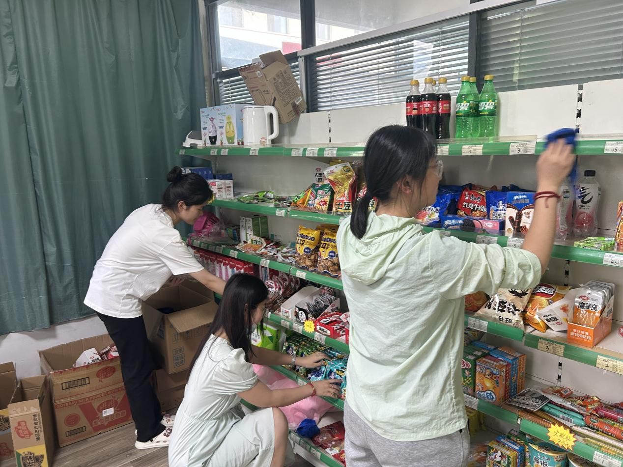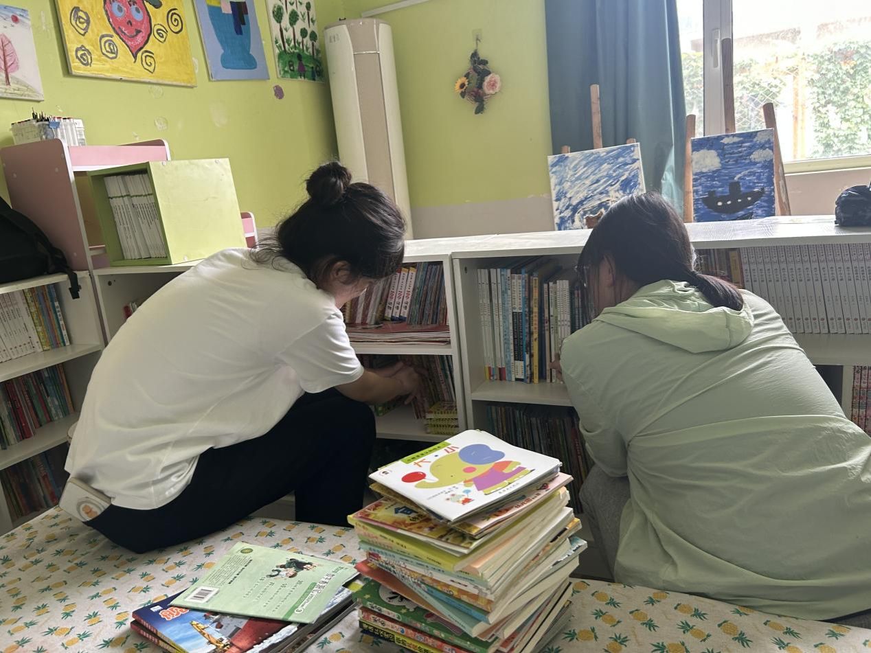 除了陪伴孩子,团队成员还承担起康复中心的环境优化工作:仓库里,他们将物资按类别归置整齐,让每一件物品都有了“固定的家”;货架前,他们仔细擦拭灰尘,将商品码放得井然有序;图书角,他们按主题整理书籍,方便孩子们取阅;垃圾分类环节,他们不仅亲手分拣,还通过简单的图示教孩子们识别不同垃圾的类别。这些看似平凡的劳动,让康复中心的环境焕然一新,更将绿色环保的理念融入实践,让“爱护环境”从口号变成可触摸的行动。