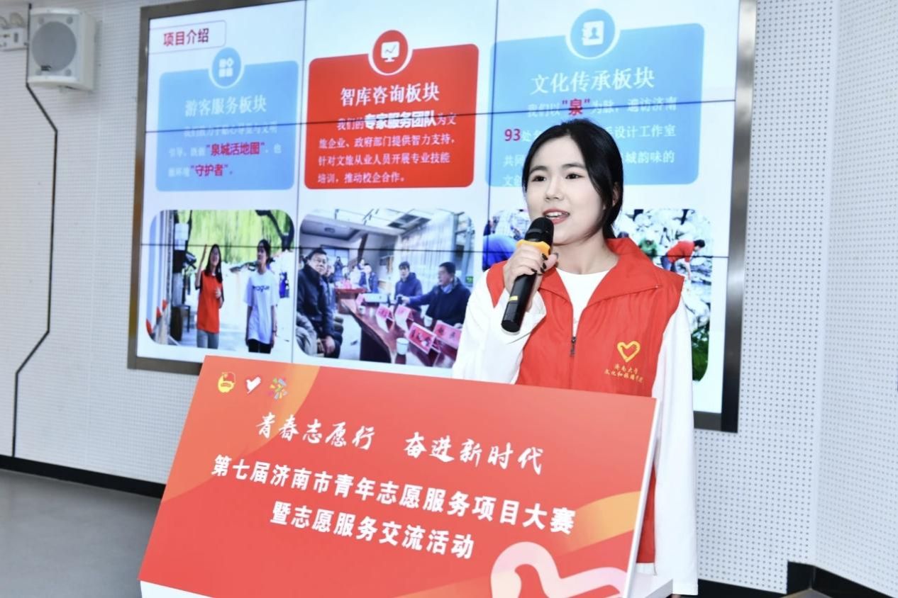 从项目申报到赛场答辩,团队成员反复打磨方案、优化展示内容,全面呈现了项目在核心优势、服务创新、社会价值等方面的亮点。评委们对项目将文旅专业知识与志愿服务深度融合的模式给予高度评价,认为项目既发挥了大学生的专业优势,又精准对接了社会文旅服务需求,对济南文旅的发展做出了独特贡献。