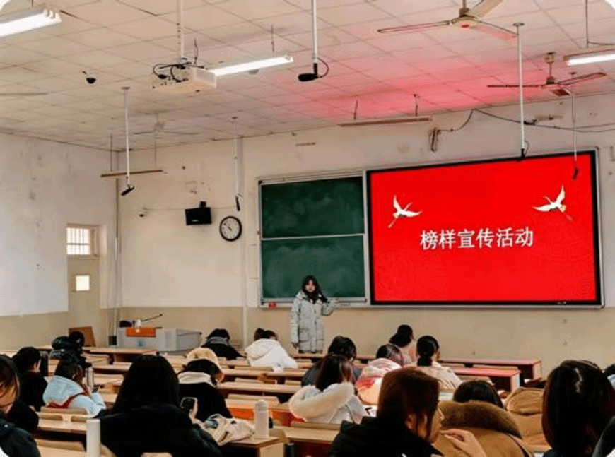 活动开始前,现场播放了相关主题短片,短片生动展现了不同历史时期先进模范的奋斗剪影,特别是身边优秀学子的成长足迹,让同学们在光影交错间直观感受到榜样精神的传承与力量,更让榜样力量变得可感可学。
