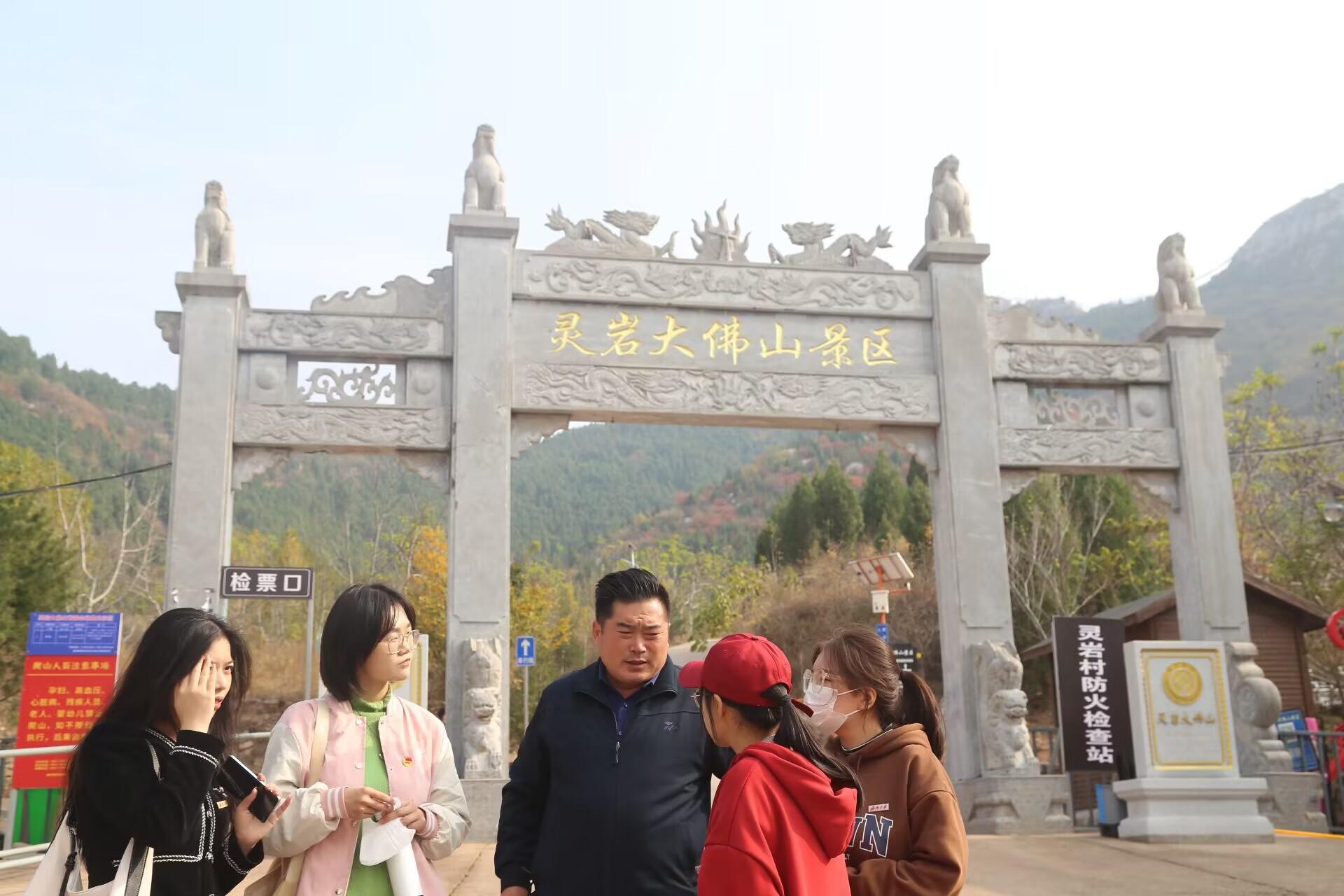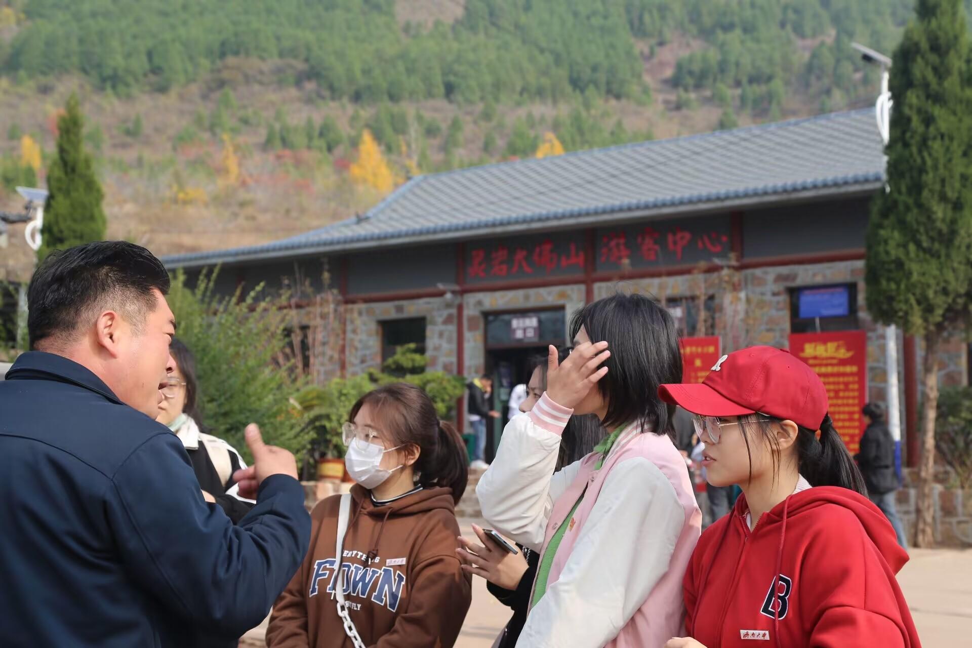 为服务乡村振兴,2022年10月29日,MG冰球突破网站MG冰球突破网站的六名学子走进灵岩大佛山景区与当地工作人员进行深入交流,调研文旅融合的详细情况。