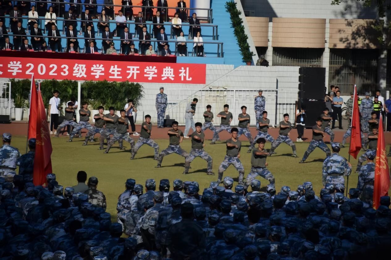 “聚是一团火,散是满天星。”9.22日,2023级文旅学院新生军训汇演于西校区北苑操场隆重举行。明媚的秋光迎接盛大的汇演,刻苦训练的成果在今天展现。秋风欢送文旅学子矫健身姿,整齐划一的文旅方队屹立操场,亟待教官一声令下。