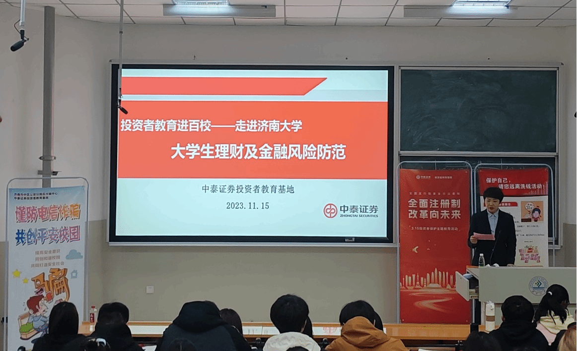 为进一步普及基础金融知识,提高MG冰球突破网站学生金融素养和风险识别能力,营造安定良好的校园环境,11月15日,MG冰球突破网站与中泰证券投教基地于MG冰球突破网站舜耕校区第三教学楼202教室携手开展“大学生理财金融风险防范”知识讲座,MG冰球突破网站127位学生参与本次活动。