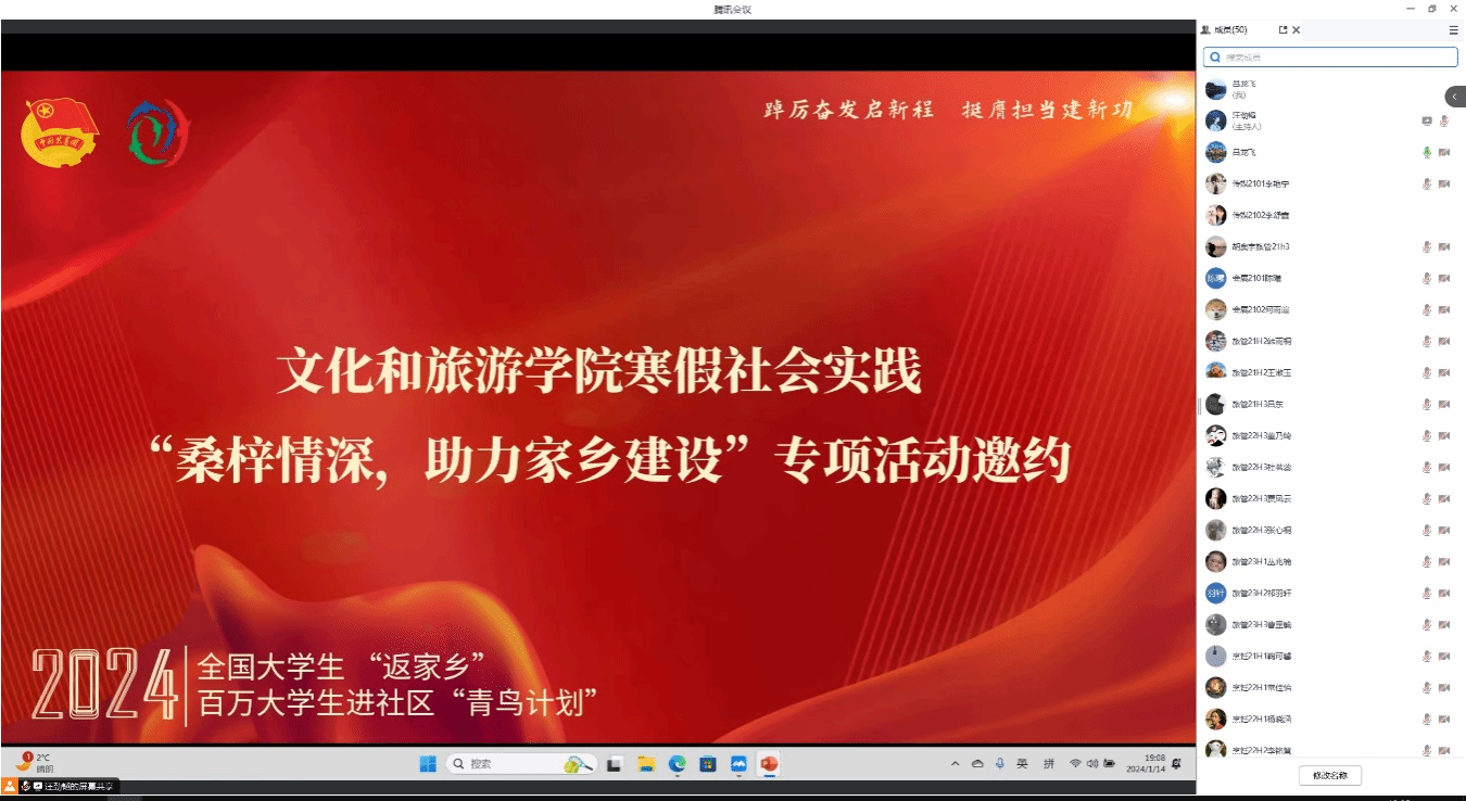 2024年1月14日至1月18日,MG冰球突破网站以线上视频的方式举行2024年大学生寒假社会实践活动系列动员会暨答疑会,共计500余名师生参与。