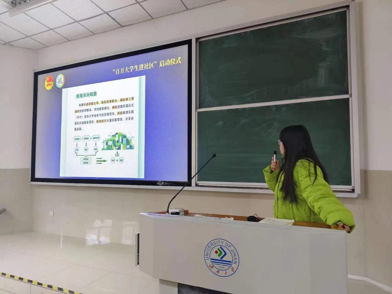 活动伊始,吕龙飞老师介绍了本学期百万大学生进社区的总体思路并发出“青春邀约”,希望同学们积极投身社区实践,擦亮“济大文旅”品牌。随后,贾凤云同学为大家讲解了“百万大学生进社区”的相关政策。