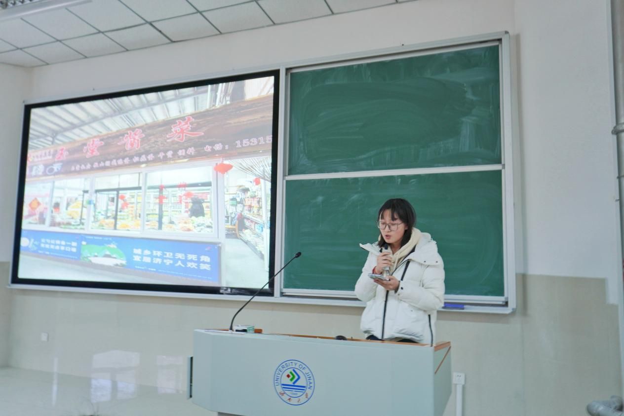 活动现场还举行了社会实践经验交流分享会。孙梦彤同学以视频的形式分享了烟台昆嵛山和临沂沂蒙山的非遗项目,与同学们探讨了不同地域山脉的地理特征对当地非物质文化遗产的影响。李雨薇同学以现场路演的形式交流了以玉堂酱菜为主要代表的中华老字号酱菜资源,并展示了玉堂酱菜冻干酱菜实物。在场同学黄艺琛表示,我们要将所学知识运用到社会实践中,发现社区文旅闪光点,服务社区多元化发展。