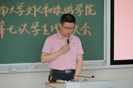 学院党委书记孟德洋在讲话中指出,学院始终把提升立德树人成效放在首位,推动人才培养、学科建设、科研成就等方面工作取得新成绩、迈上新台阶,为实现中华民族伟大复兴凝聚青年力量。他寄语文旅学子:一是应树立正确的政治引领与青年担当,呼吁共青团组织和团员青年坚定跟党走的信念,牢记党的奋斗主题,立志成为新时代的好青年;二是应坚持创新与发展,鼓励学院共青团组织和团员青年弘扬创新精神,通过创造性的工作来开创文旅团学工作的新局面;三是应加强社会实践与理论实践,倡导团员青年积极投身社会实践,将理论学习与实际应用相结合,培养具有国际视野和社会担当的新时代青年。