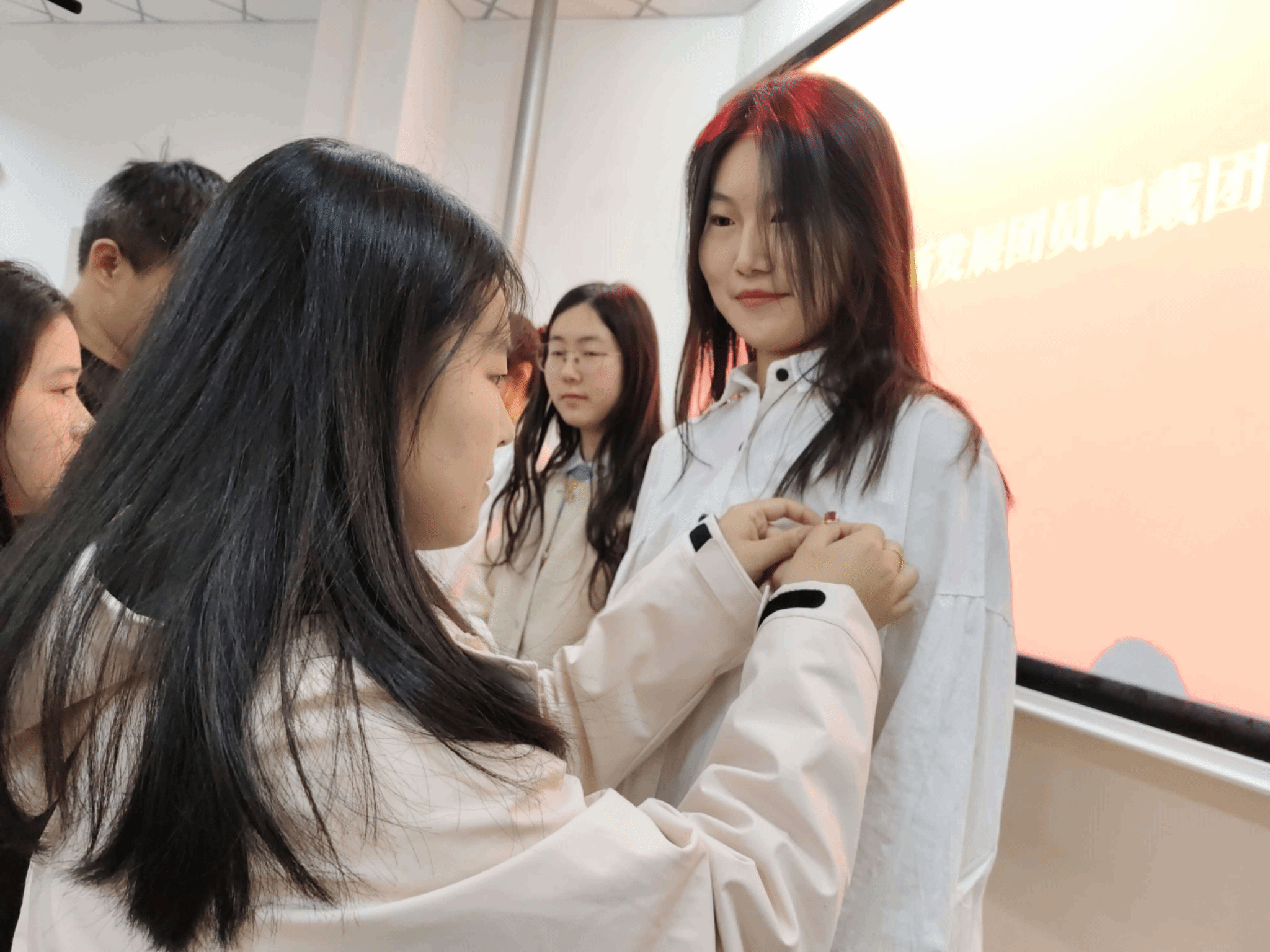 仪式在庄严的国歌中拉开序幕,主持人首先宣读了学院2024年度新发展团员入团名单,并由基层团干部为新团员佩戴上了团徽。刘炳玺同学带领全体团员面向团旗庄严宣誓,表达出对共青团组织的无限忠诚和对共产主义事业的坚定信念。