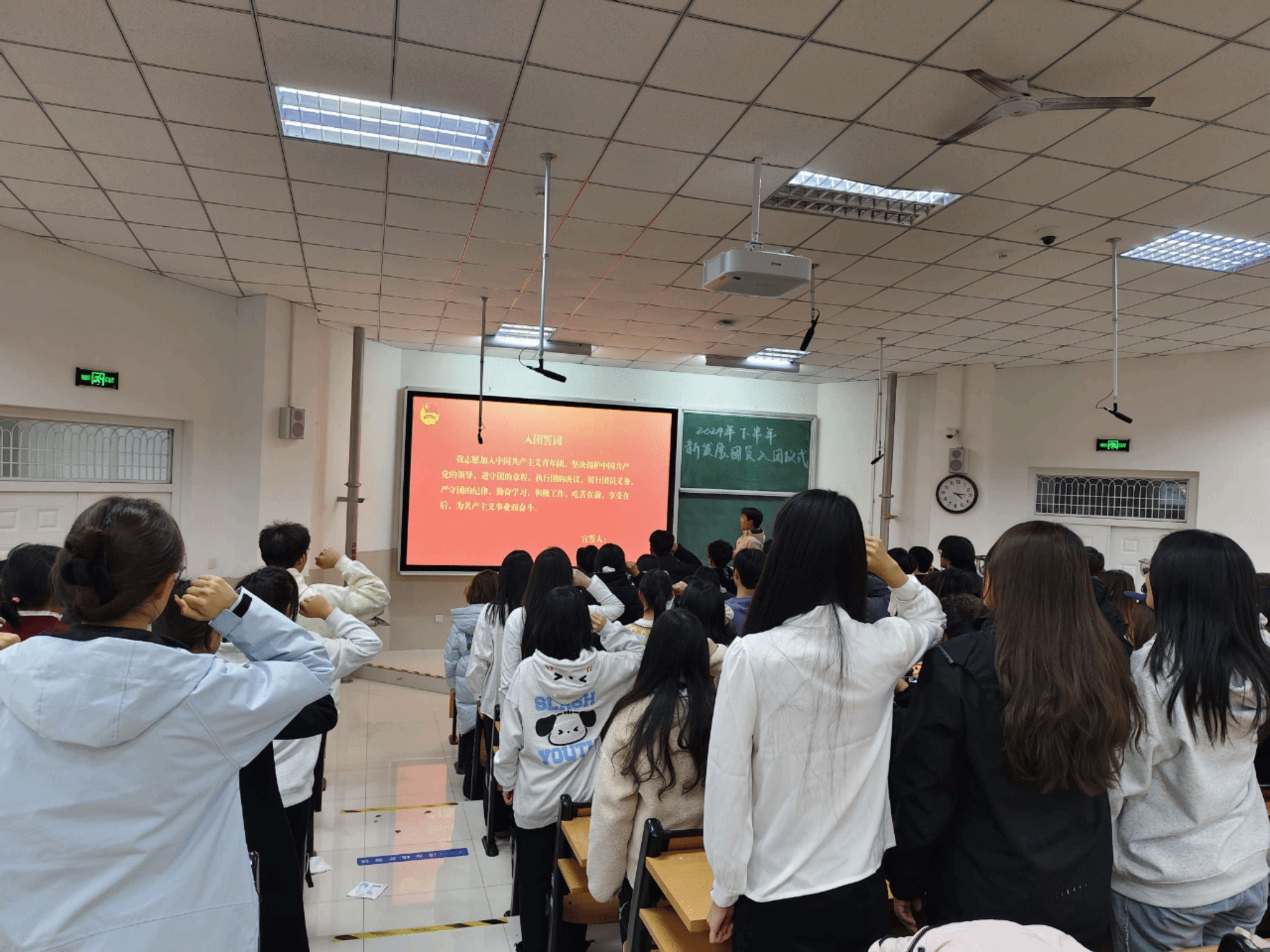 为加强团员教育管理,团结引领广大团员青年永远跟党走、奋进新征程。11月27日,MG冰球突破网站于D3J202举行了2024年度新发展团员入团仪式,仪式由李超然同学主持,学院团委书记吕龙飞老师、新发展团员及所属团支部全体委员共计七十余人参与了本次活动。