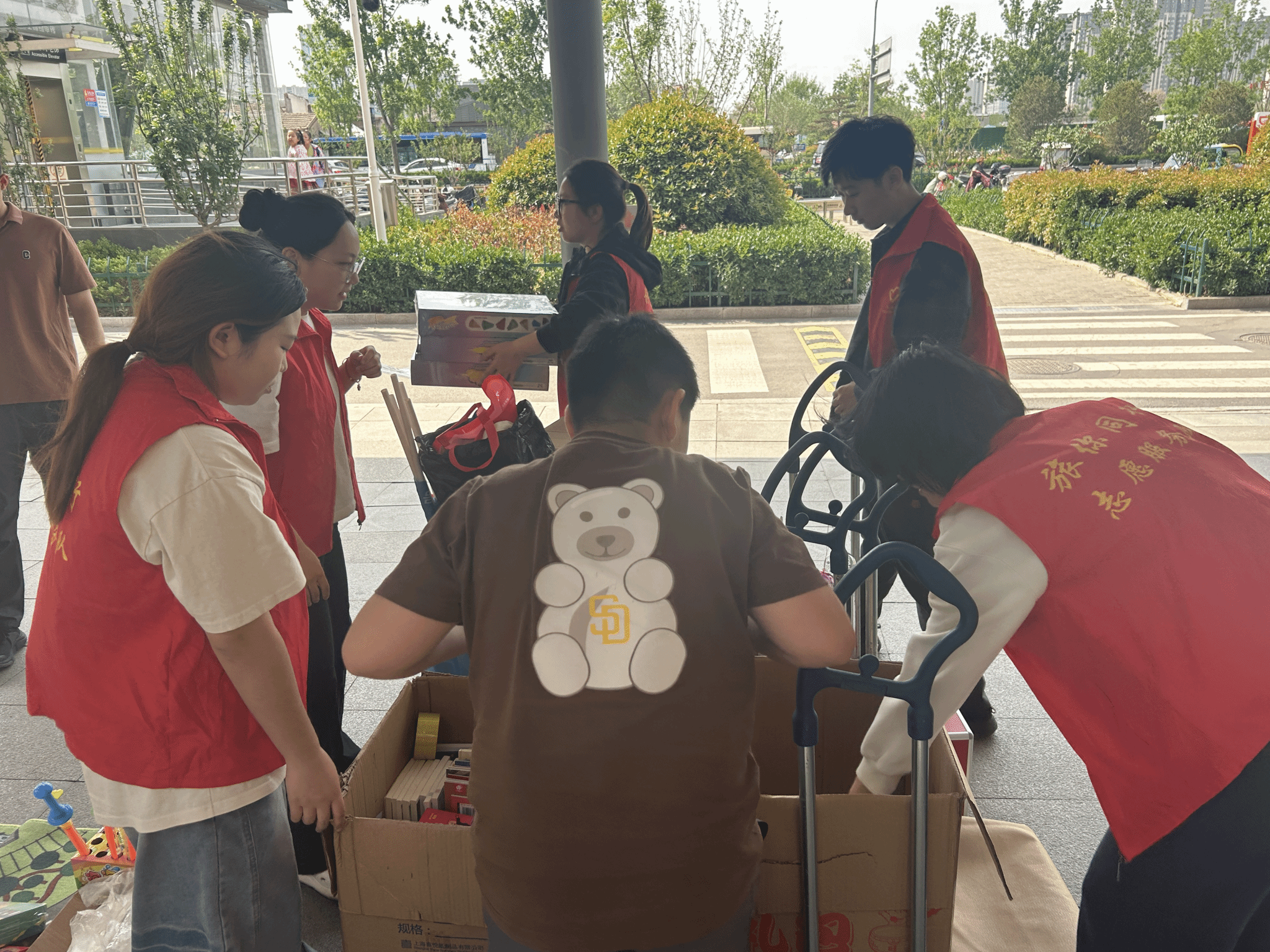 从晨曦微露到暮色四合,志愿者们以时光为笔,在9:30至17:30的光阴画卷上镌刻责任。他们是不知疲倦的“搬运工”,将一箱箱承载着希望的物资化作摊位上的星河——亲手搭建的展架上,扇子轻摇着夏日的诗意,风铃叮咚着童真的韵律,钥匙挂件闪烁着手工的温情。当阳光爬上他们汗湿的鬓角,他们又化身为灵动的“宣传员”,手持传单穿梭于人流,用微笑讲述康复中心与残障儿童的故事,让“每个孩子都该被世界温柔以待”的理念如春风拂过人心。