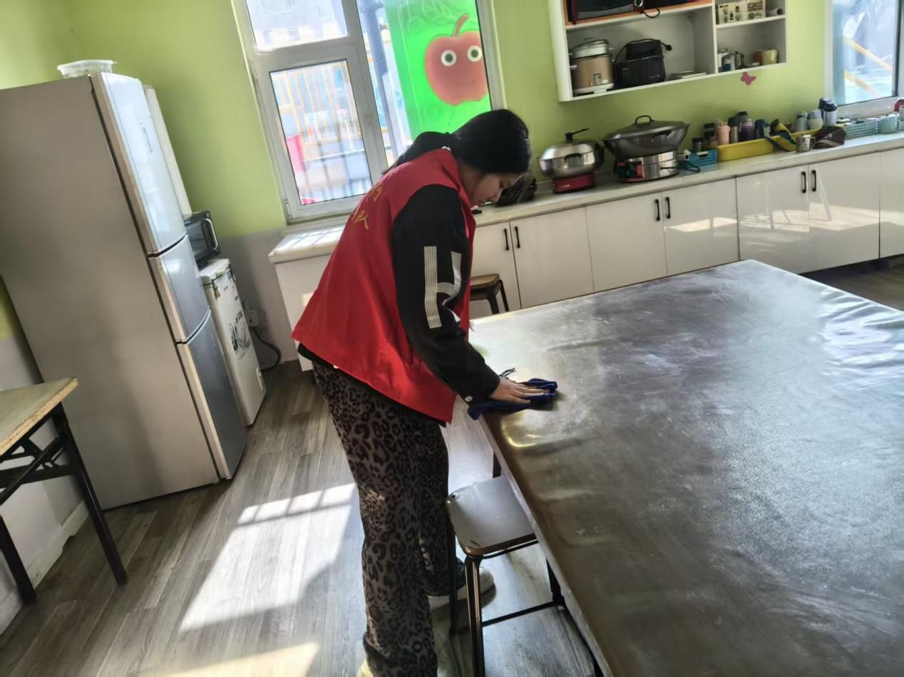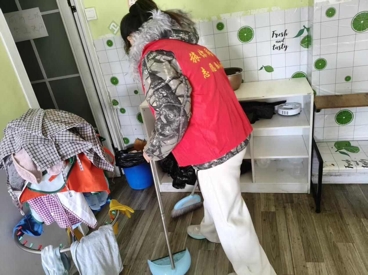 为给孩子们营造整洁、安全、有序的成长与活动环境,志愿者们主动承担起康复中心的清洁整理工作,分工协作、高效联动。他们细致擦拭桌椅橱柜、认真清扫地面角落、彻底清洗餐具器皿,将卫生清洁落到实处;同时,针对康复活动室的各类训练道具、玩具器材,志愿者们逐一分类、归纳整理,按照使用频率与功能属性有序摆放,确保道具取用便捷、场地整洁规范。汗水浸湿衣衫,却丝毫未减服务热情,志愿者们用双手打造洁净家园,用行动筑牢健康防线,让爱心与责任体现在每一处细节之中。