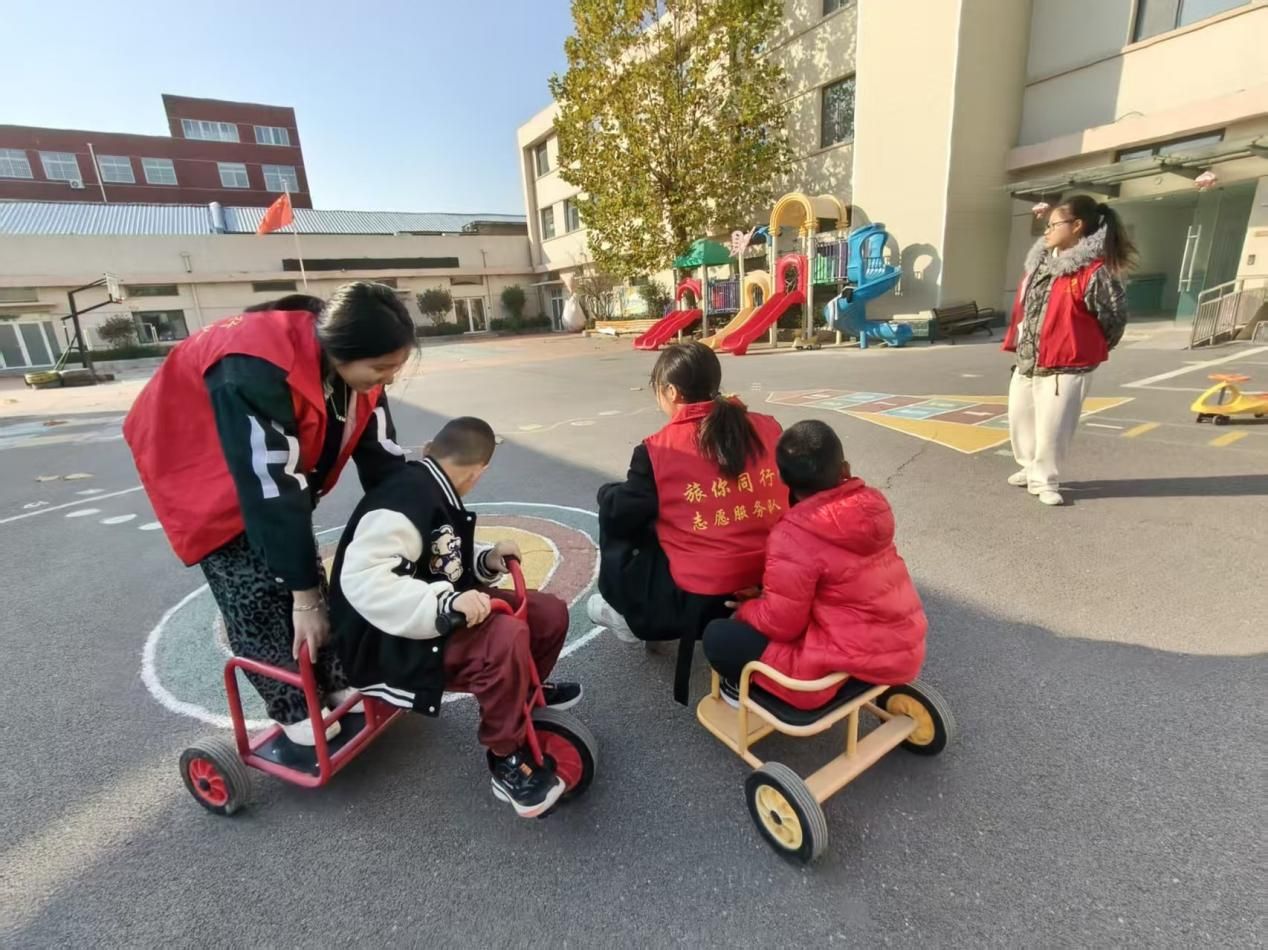 暖阳正好,微风不燥。志愿者们牵着孩子们的手来到室外活动区,开启了欢乐的互动时光。两人同乘一辆小车,在暖阳下缓缓前行,笑声在微风中回荡,身影在光影中穿梭。志愿者们带着孩子们奔跑、嬉戏,用陪伴守护童真,用欢笑点亮时光,每一个并肩的身影,每一张灿烂的笑脸,都成为这个冬日里最温暖的风景,也让孩子们在互动中感受着陪伴的快乐与世界的美好。